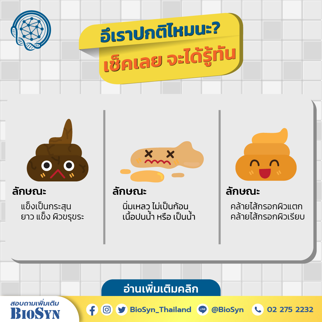 มาลองเช็คกันดูค่ะว่าถ้าเราอึปกติดี อึนั้นจะยาวจนมีลักษณะคล้ายไส้กรอกแต่มีผิวแตกแห้ง หรืออาจเป็นก้อนนิ่มผิวเรียบ โดยอึไม่เกิน 3 ครั้งต่อวัน และไม่น้อยกว่าสัปดาห์ละ 3 ครั้ง ถ้าเรามีพฤติกรรมการอึแบบนี้แสดงว่าอึปกติ สุขภาพการขับถ่ายดีมาก แล้วคุณล่ะอึบ่อยแค่ไหน?