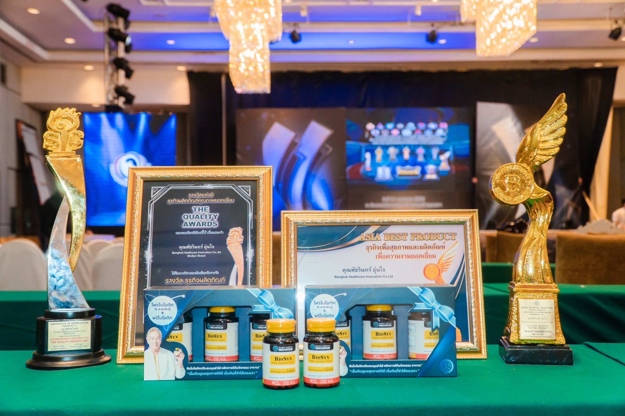 คุณพัชรินทร์ อุ่นใจ กรรรมการผู้จัดการบริษัทกรุงเทพ เฮลแคร์ อินโนเวชั่น จำกัด และทีมงาน BioSyn Thailand ภายใต้แบรนด์ Bangkok Healthcare Innovation (BHI)  เข้ารับ 2 รางวัล