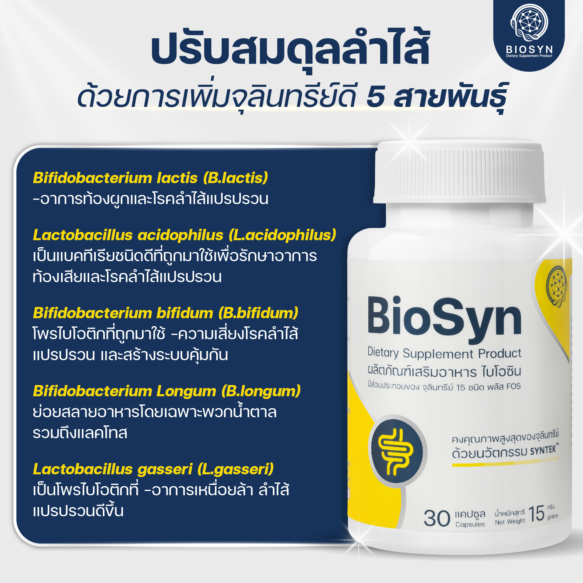 เติมจุลินทรีย์ที่ดีต่อลำไส้เพื่อลดอาการลำไส้แปรปรวนด้วยโพรไบโอติก 5 สายพันธุ์ที่จะช่วยปรับสมดุลลำไส้โดยเฉพาะจาก BioSyn