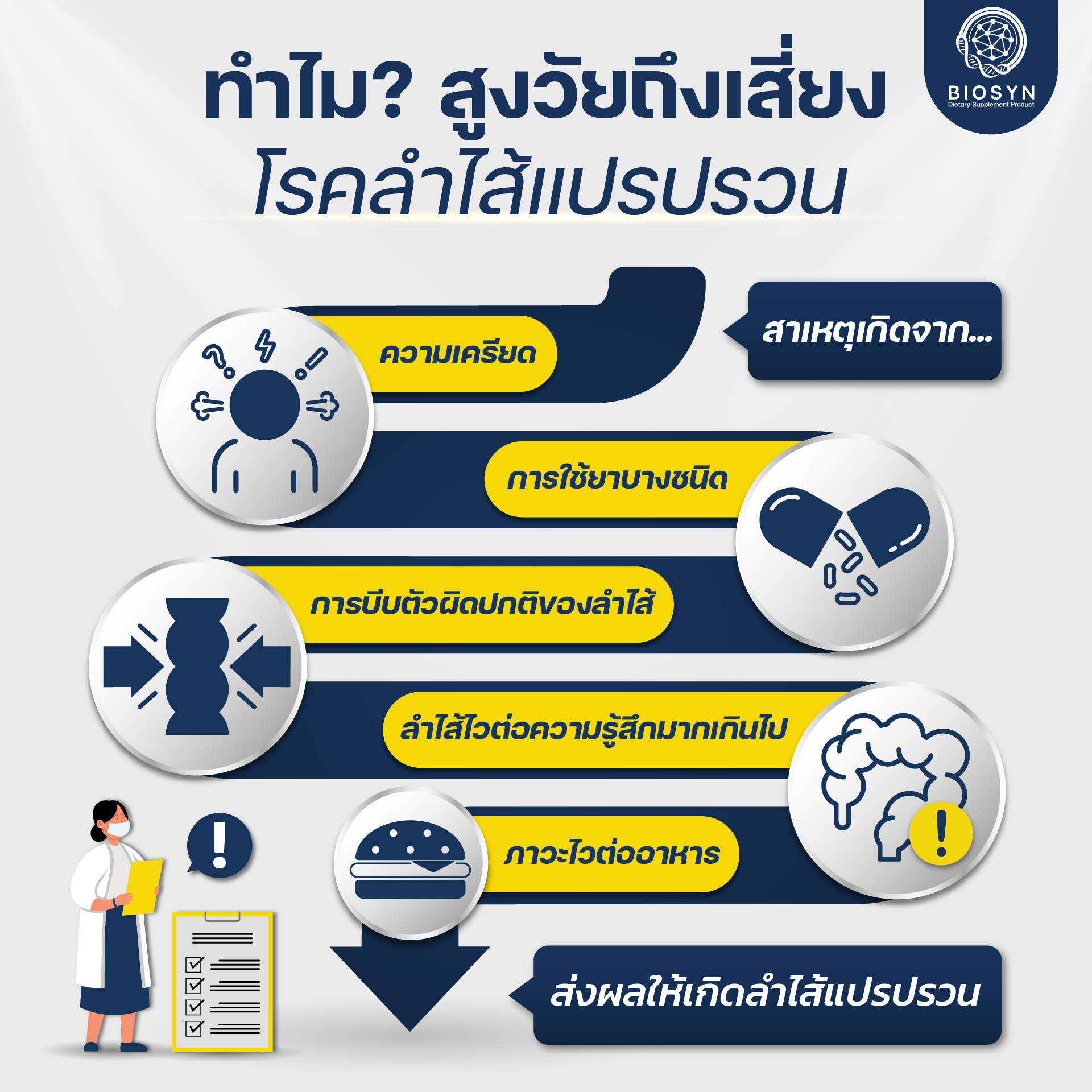 จากผลสำรวจ Praram9 Hospital พบว่า ร้อยละ 20 ของผู้สูงวัยทั่วโลก มักมีอาการปวดท้อง ขับถ่ายผิดปกติ ท้องเสีย ท้องผูก ท้องอืด หรือกรดไหลย้อน ที่นำมาสู่ปัญหาโรคลำไส้แปรปรวน (IBS)